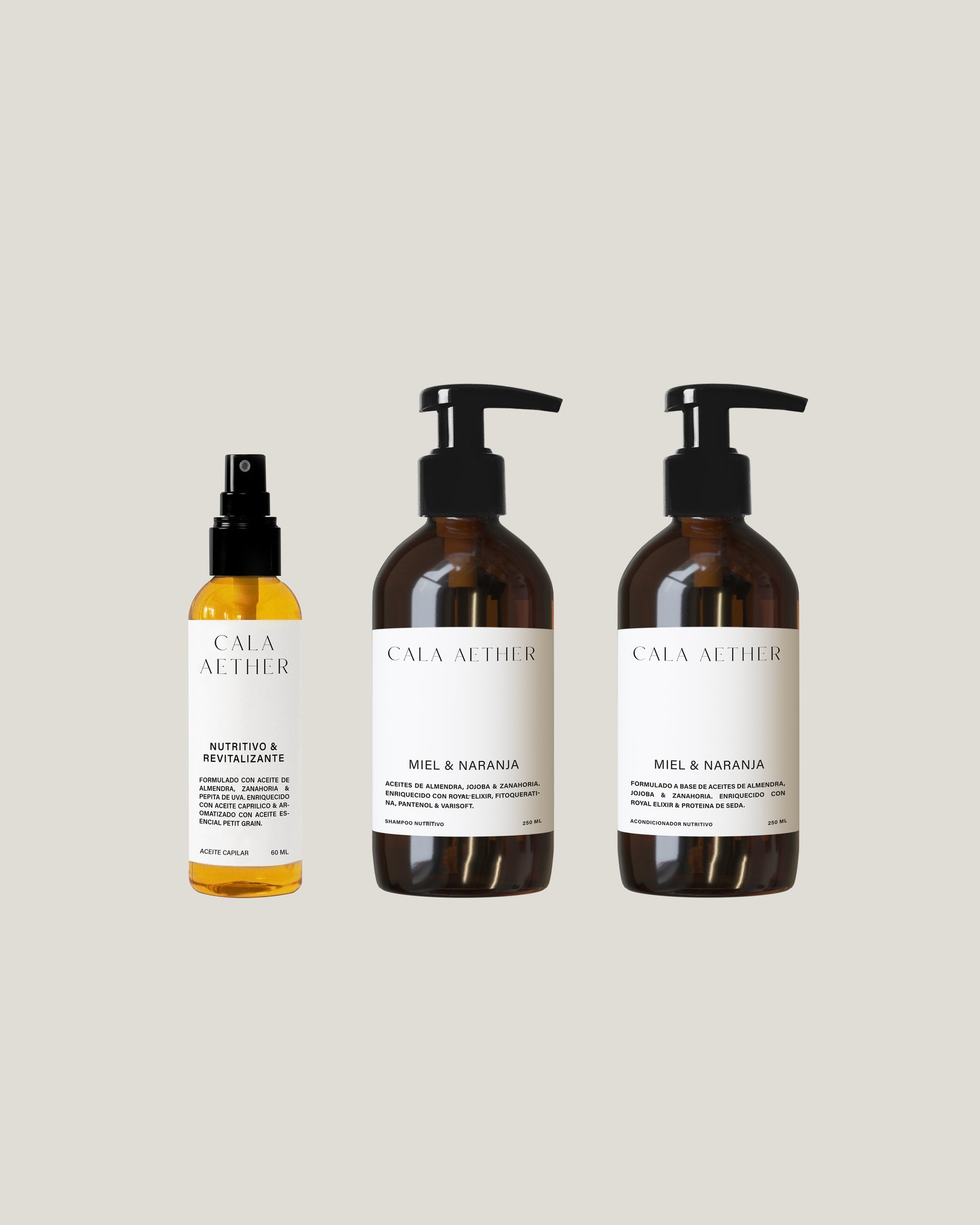 Tratamiento completo diseñado para transformar el cabello seco o dañado, restaurando su vitalidad desde la raíz hasta las puntas. Este set es un auténtico elixir de miel y naranja, que comienza con nuestro Aceite Capilar Nutritivo, un pre-tratamiento que prepara y sella la hebra. Continúa con el Shampoo y Acondicionador Nutritivo a juego, que limpian y acondicionan intensamente. Es el regalo perfecto para quienes buscan una reparación profunda y un cabello que irradie salud y un brillo espectacular.